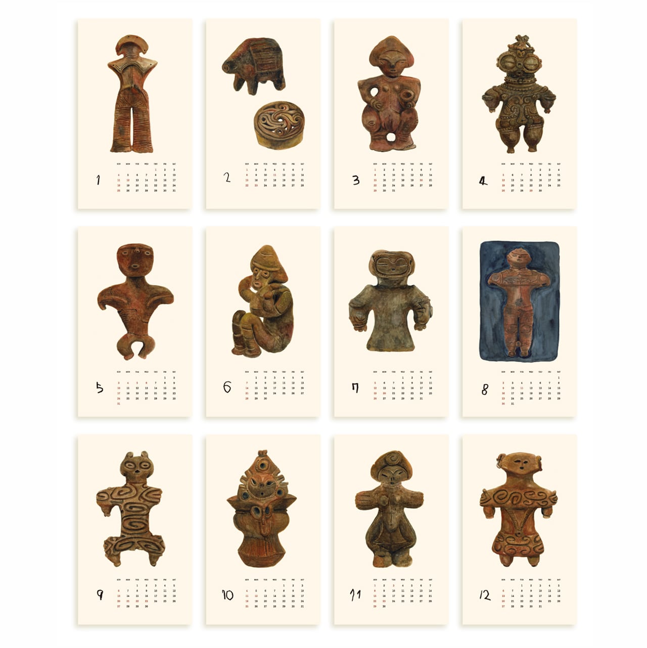 さとうゆかりが水彩で描く縄文土偶のカレンダーです。